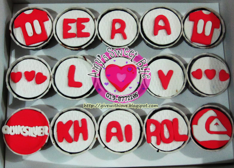 Zaheera from KL ordered this for someone special here in Kuching. She ordered 15pcs chocolate cupcakes topped with rich chocolate ganache with romantic hearts / couple deco. Thanks dear.